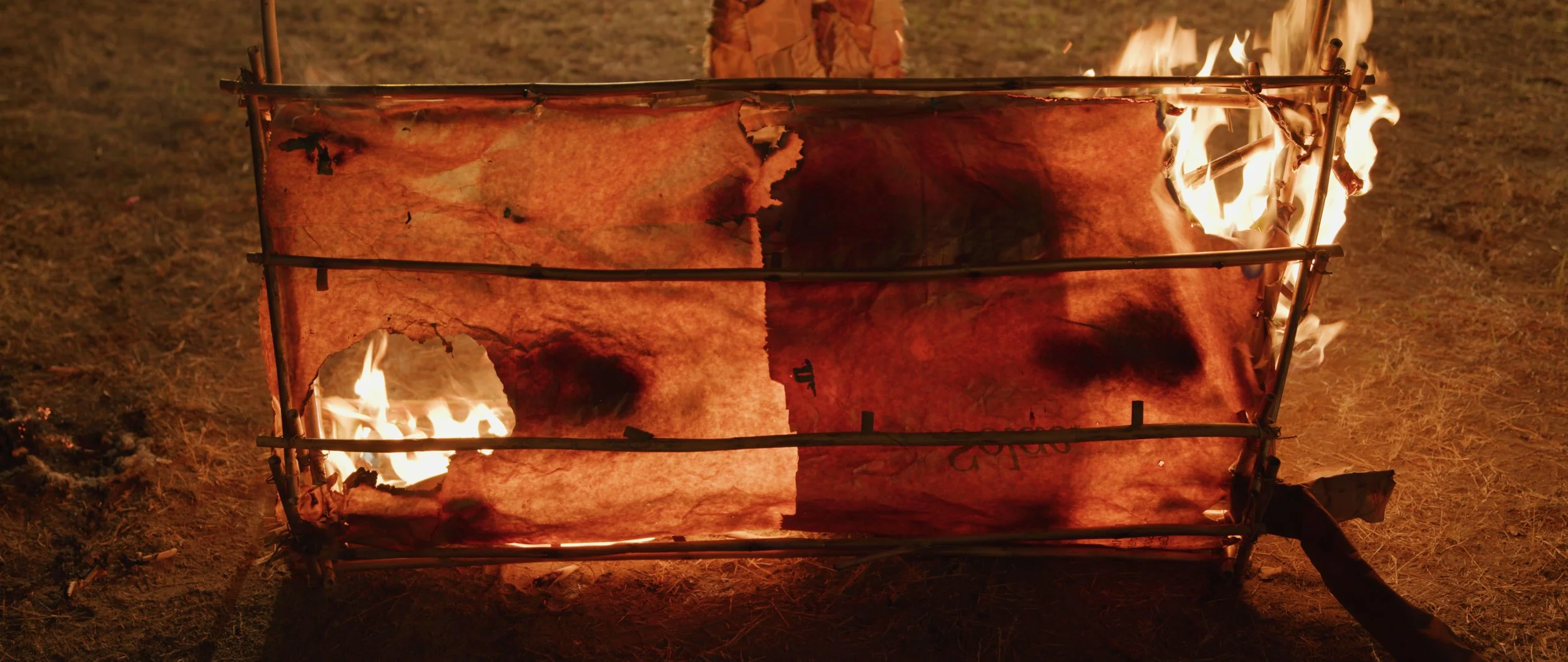 Elyla's performance, Torita-encuetada (2023), an anti-colonial ceremony, explores liberation from the colonial yoke through a fire ritual rooted in a Nicaraguan cultural practice called “Toro encuetado.” Serving as a poignant act of political remembrance, the ritual dance or mitote calls for a return to earth-honoring practices and for the decolonization of mestizaje of sexual and gender diverse identities in Mesoamerica. Collaborating with Nicaraguan filmmaker Milton Guillen and music by Susy Shock and Luigi Bridges, the filmed ritual delves into the encounter of ancestral corpodivinities from Nicaragua's Pacific region, inviting viewers to witness the intersections of culture, anticolonial artistic praxis and the sacred. Committed to challenging societal norms, Elyla transforms the “cochón” (queer) utopia into a revolutionary artistic practice of the now.